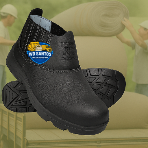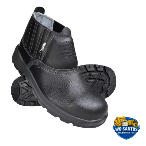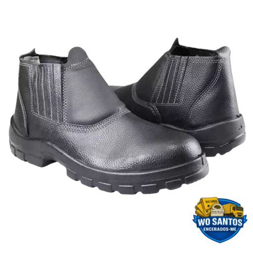 Botina de Segurança em Couro Preta WO Santos – Bico de PVC – Antiderrapante – Tam. 36 ao 47