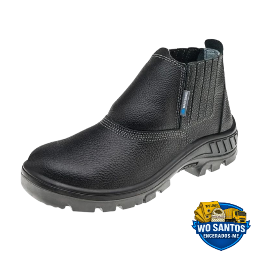 Botina de segurança em couro legítimo, resistente e confortável, disponível com bico de PVC . Modelo preto, solado antiderrapante e fechamento com elástico para facilitar o uso. Ideal para trabalho pesado, oferecendo proteção e durabilidade nos mais diversos ambientes profissionais.